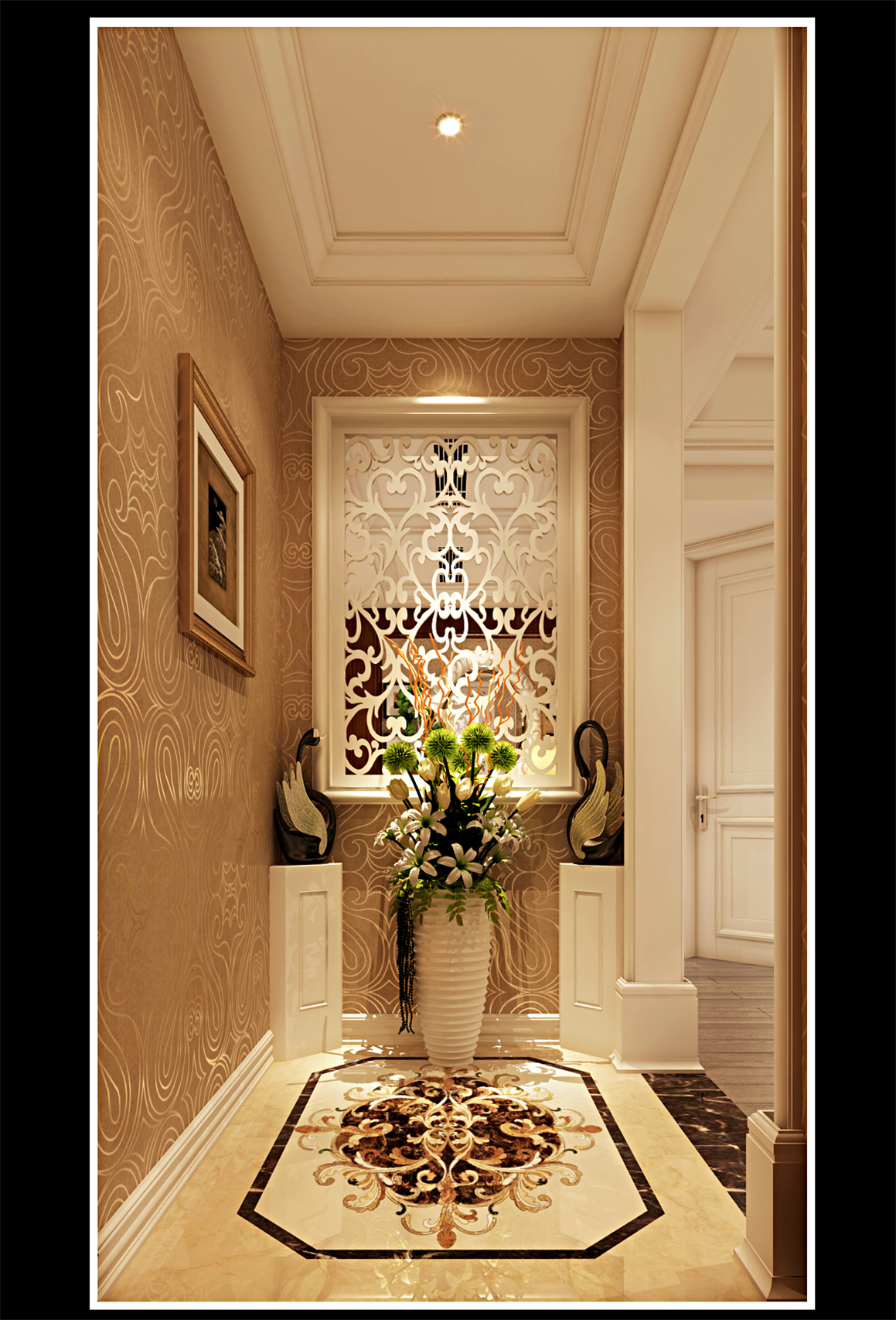 大理石、護(hù)墻板、實(shí)木線條、墻布