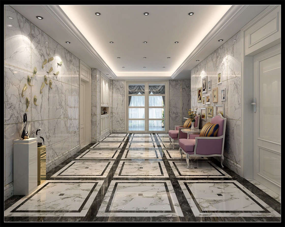 大花白大理石、爵士白大理石、實木烤漆護墻板、液體墻紙、地毯、布藝硬包