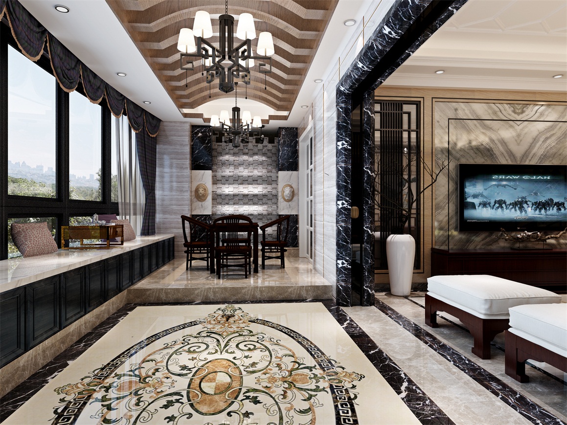 黑鋼,文化石流水墻,簡一大理石瓷磚,水刀平花,實木木工板,多樂士乳膠漆。