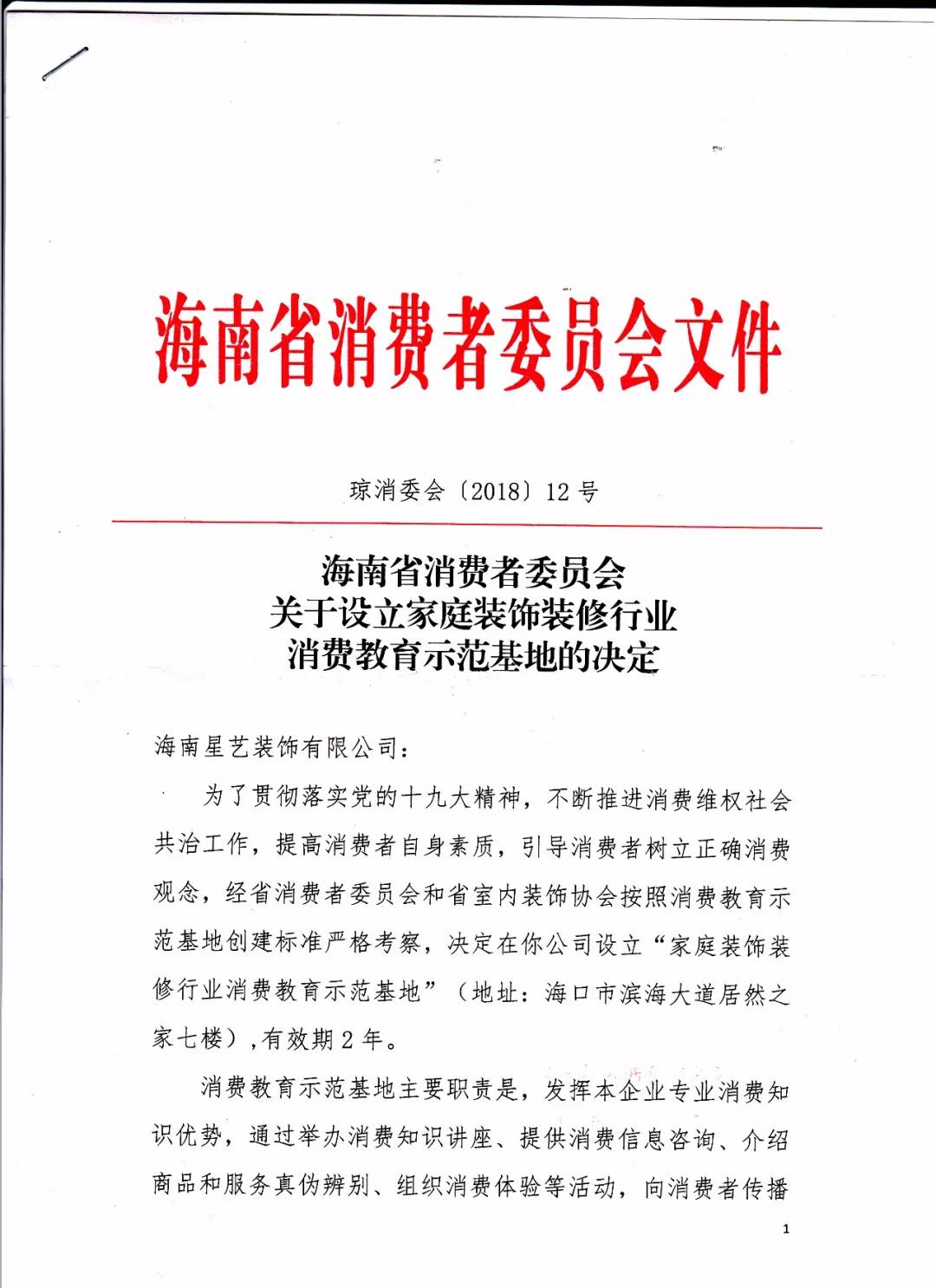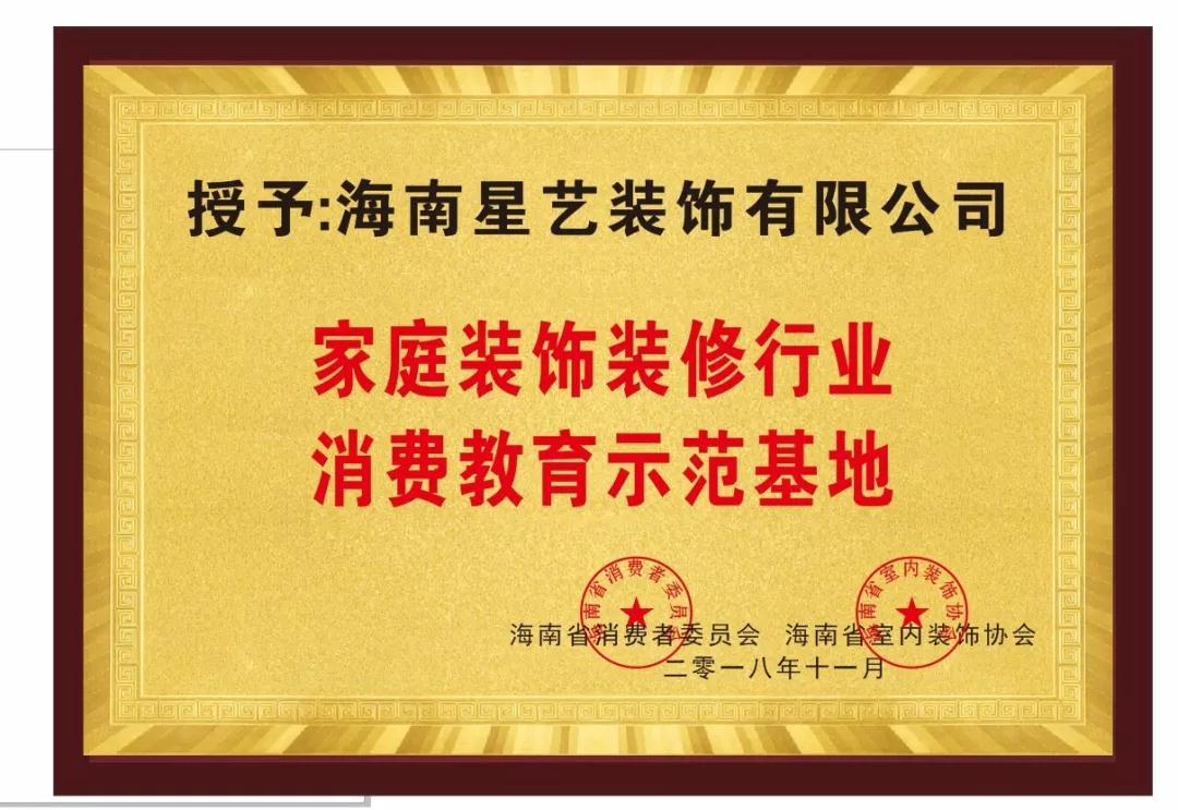 為了貫徹落實黨的十九大精神,不斷推進消費維權(quán)社會共治工作,提高消費者自身素質(zhì),引導消費者樹立正確消費觀念,經(jīng)省消費者委員會和室內(nèi)裝飾協(xié)會按照消費教育示范基地創(chuàng)建標準嚴格考察,決定在海南星藝裝飾有限公司設(shè)立“家庭裝飾裝修行業(yè)消費教育示范基地”