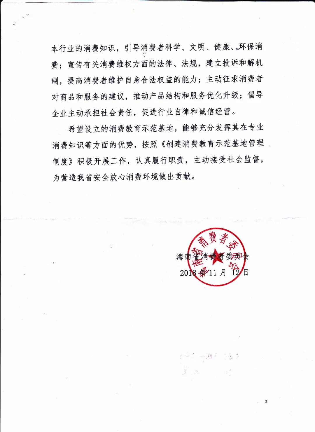 海南省消費者委員會陳秘書長表示:基地的設(shè)立,是為了能夠更好的引導消費者科學、文明、健康、環(huán)保消費,宣傳有關(guān)消費維權(quán)方面的法律、法規(guī).提高消費者自身合法權(quán)益的能力,促進企業(yè)自律和誠信經(jīng)營。