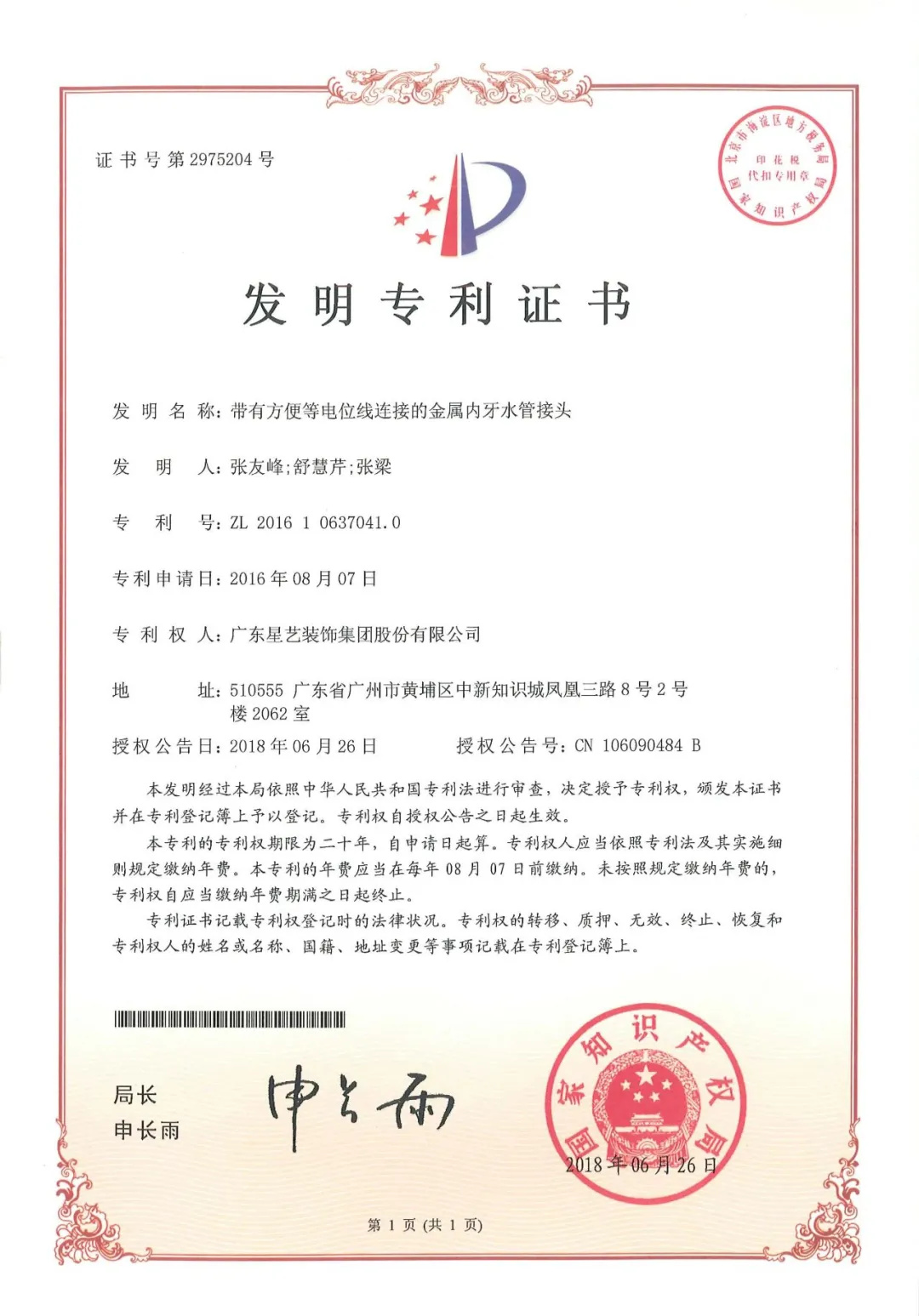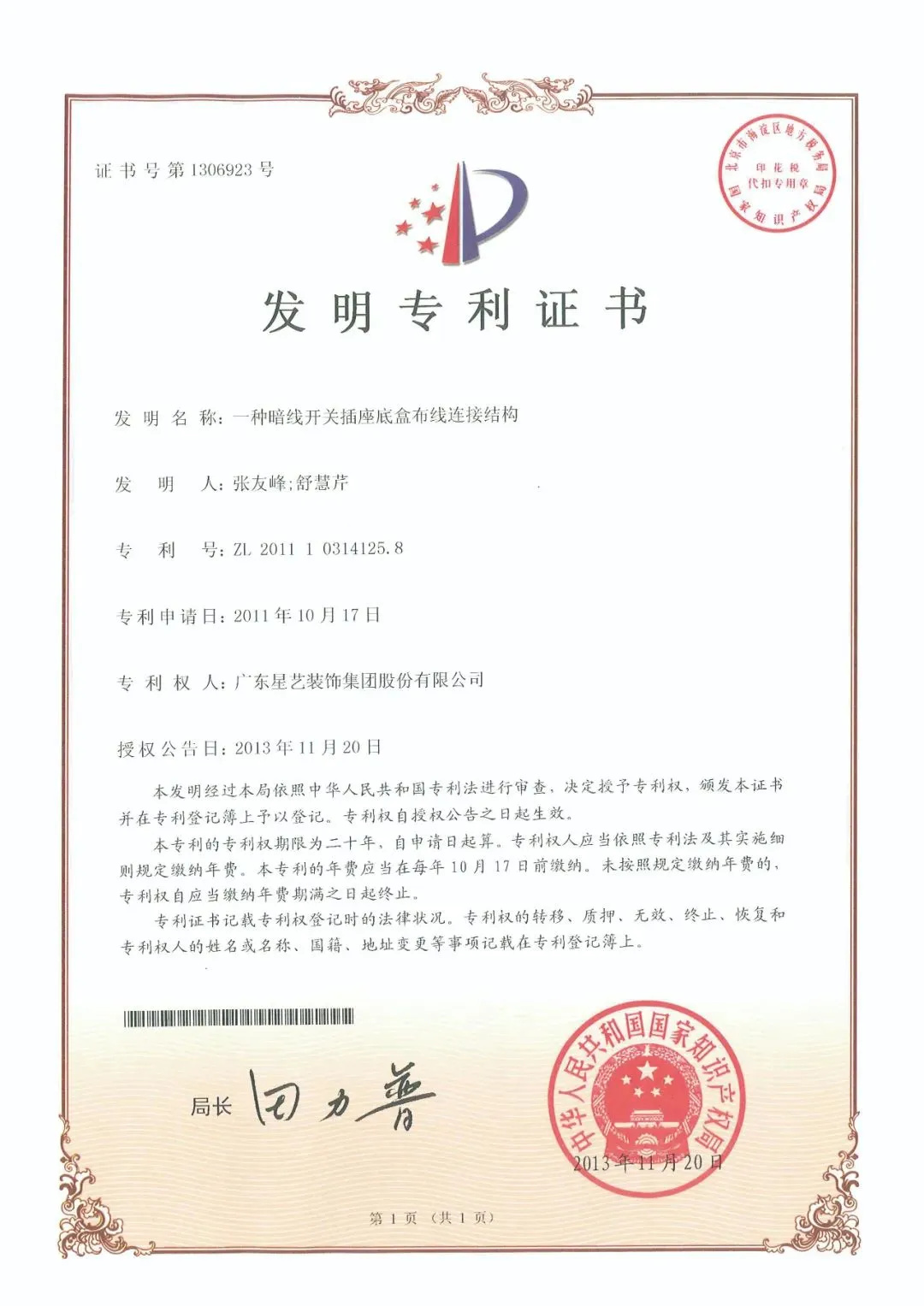 截至目前,星藝裝飾已研發(fā)出二十多項國家實用新型專利和外觀設(shè)計專利。