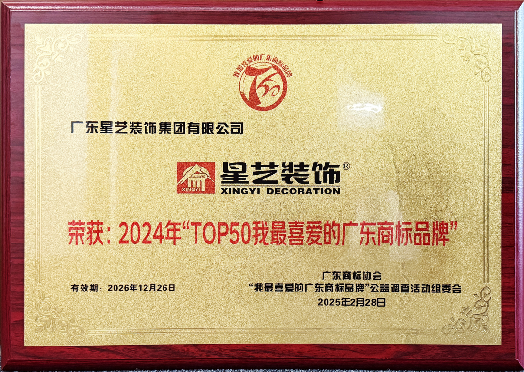 會上,星藝裝飾榮膺“2024年TOP50我最喜愛的廣東商標(biāo)品牌”。