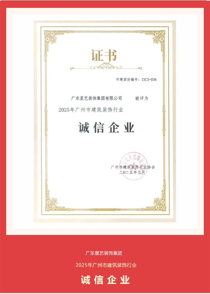 導讀:星藝裝飾榮膺“2025年廣州市建筑裝飾行業(yè)誠信企業(yè)”榮譽稱號