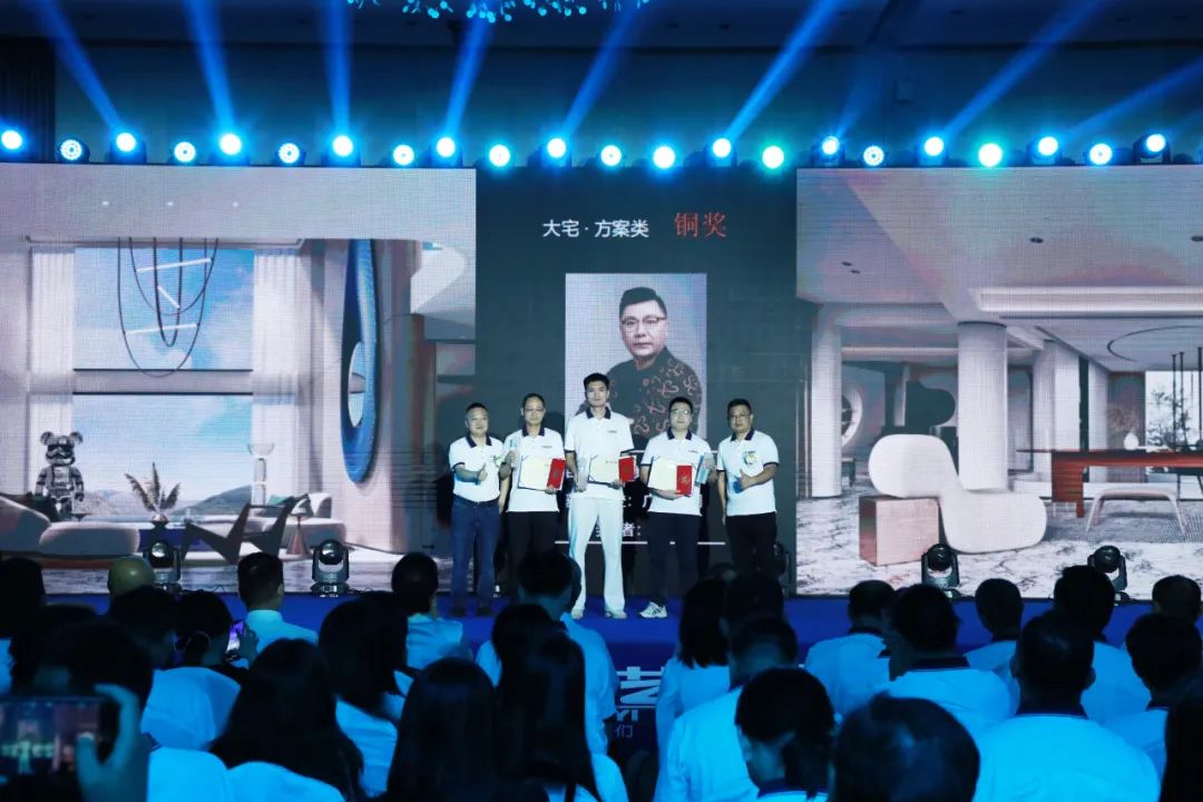 在頒獎(jiǎng)盛典上,新塘公司張大為設(shè)計(jì)作品《逸白》斬獲家裝方案類作品金獎(jiǎng),佛山公司趙曉珍設(shè)計(jì)作品《棕韻新章》斬獲家裝實(shí)景類作品金獎(jiǎng),秦皇島公司劉文達(dá)設(shè)計(jì)作品《暮云歸》斬獲大宅方案類作品金獎(jiǎng),廣州公司張志威、張磊設(shè)計(jì)作品《柔弧·漾居》斬獲大宅實(shí)景類作品金獎(jiǎng),西雙版納公司熊衛(wèi)民設(shè)計(jì)作品《勐海民宿》斬獲公裝方案類作品金獎(jiǎng),佛山公司余文文、駱家駿設(shè)計(jì)作品《蔚見》斬獲公裝實(shí)景類作品金獎(jiǎng),廣州公司周偉睿設(shè)計(jì)作品《寄情人》斬獲短視頻作品金獎(jiǎng)。