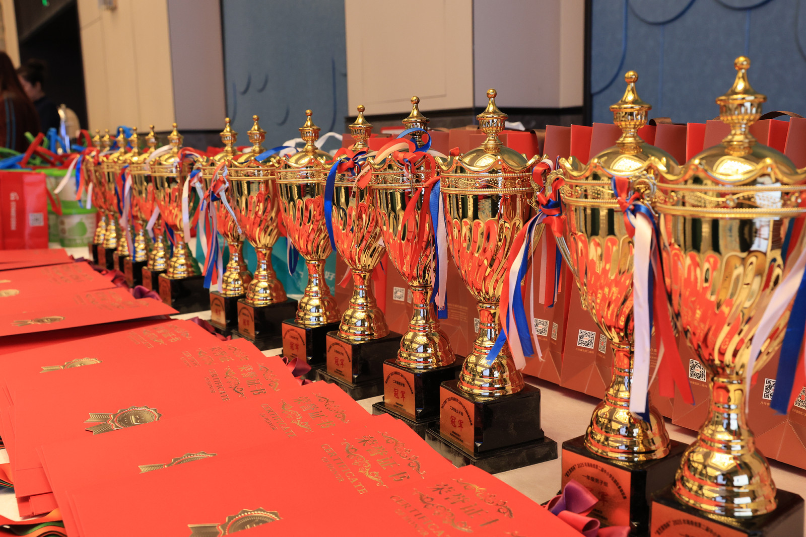 為獲獎(jiǎng)選手頒發(fā)獎(jiǎng)杯和證書