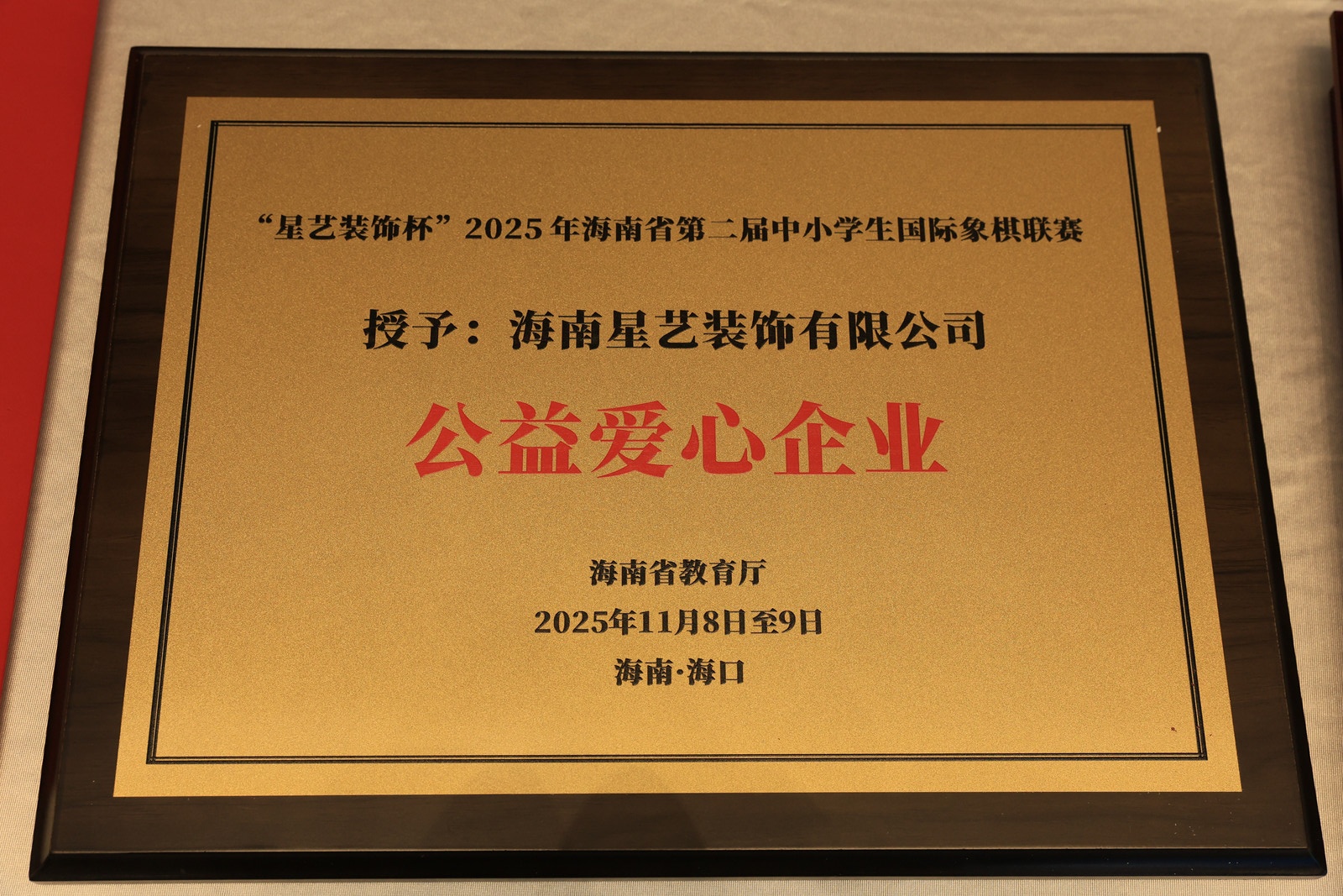 海南省中小學(xué)生國際象棋聯(lián)賽圓滿落幕,海南星藝裝飾獲授“公益愛心企業(yè)”